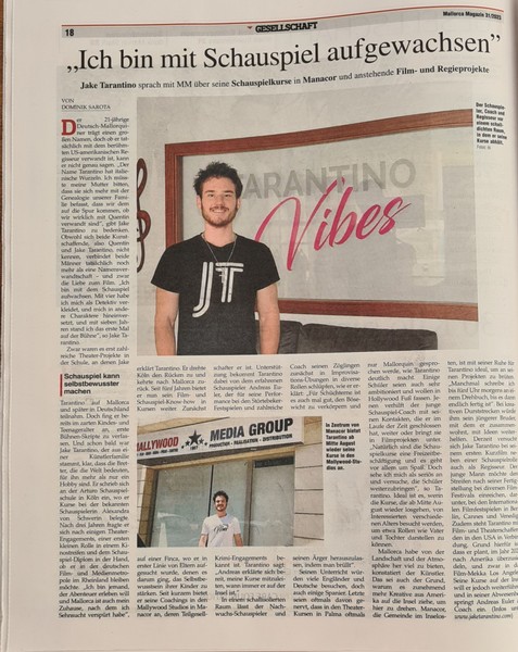Seit 5 Jahren gebe ich Schauspielunterricht. Anfangs auf einer Finca in Manacor, jetzt in den neuen Räumen der Mallywood Studios, ebenfalls in Manacor.
